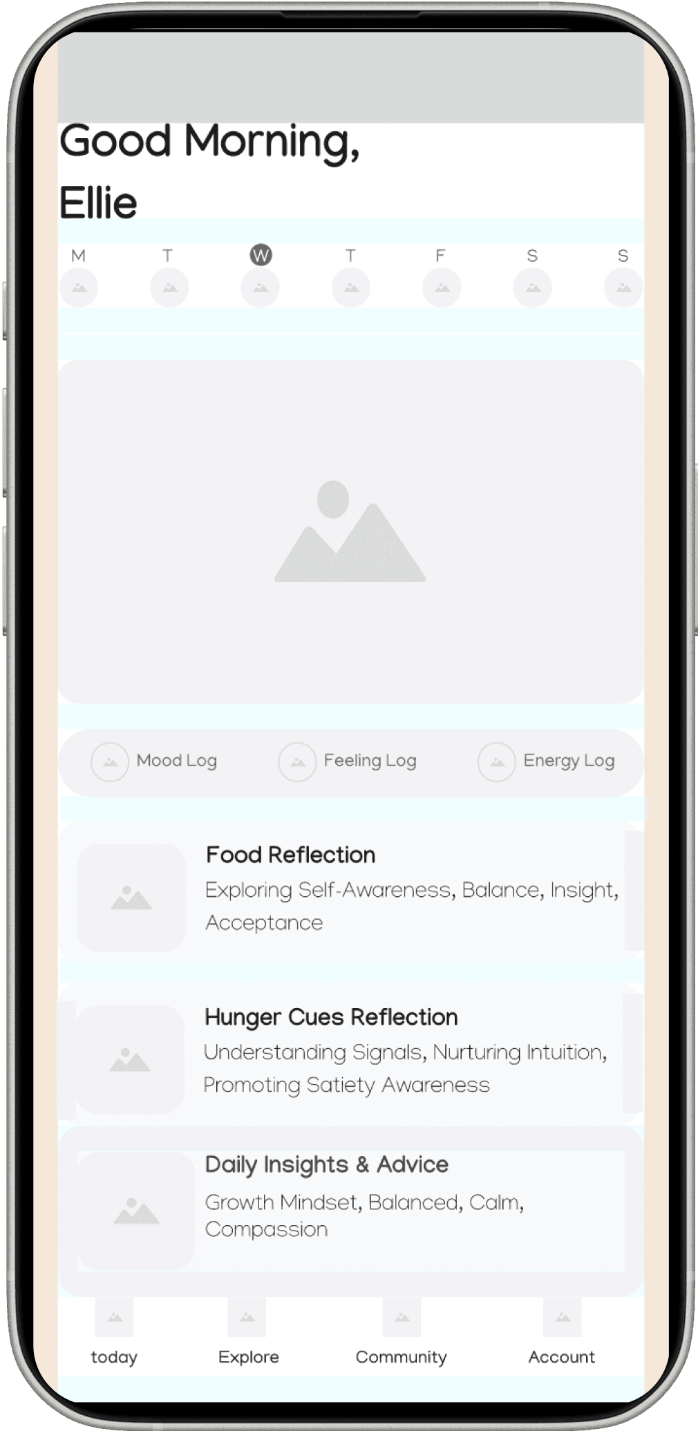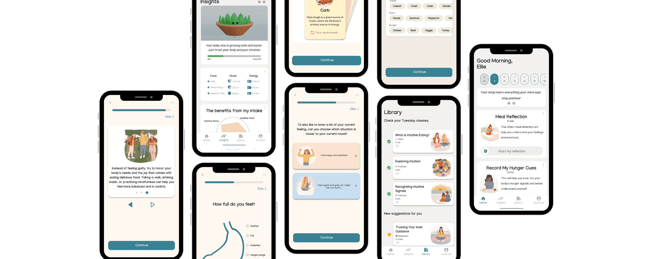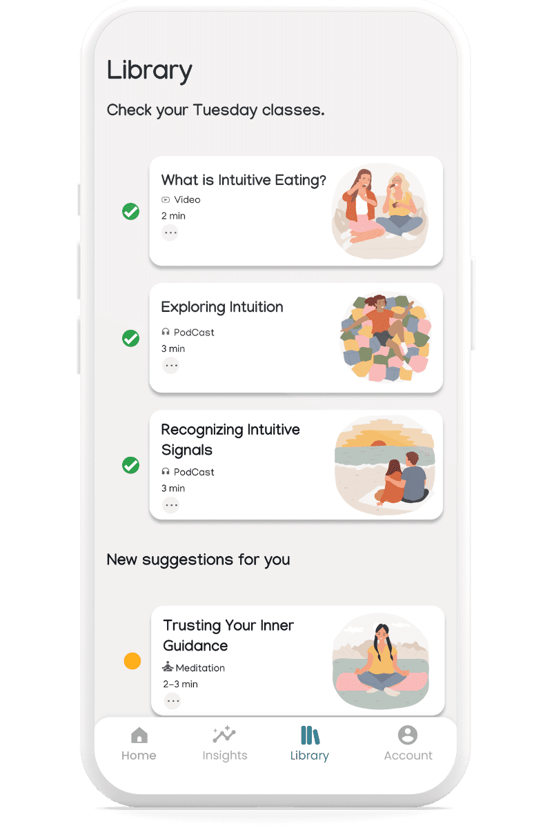 A project to help people break free from diet culture by providing a supportive, numberless space for intuitive eating. The app focuses on building a healthier relationship with food.